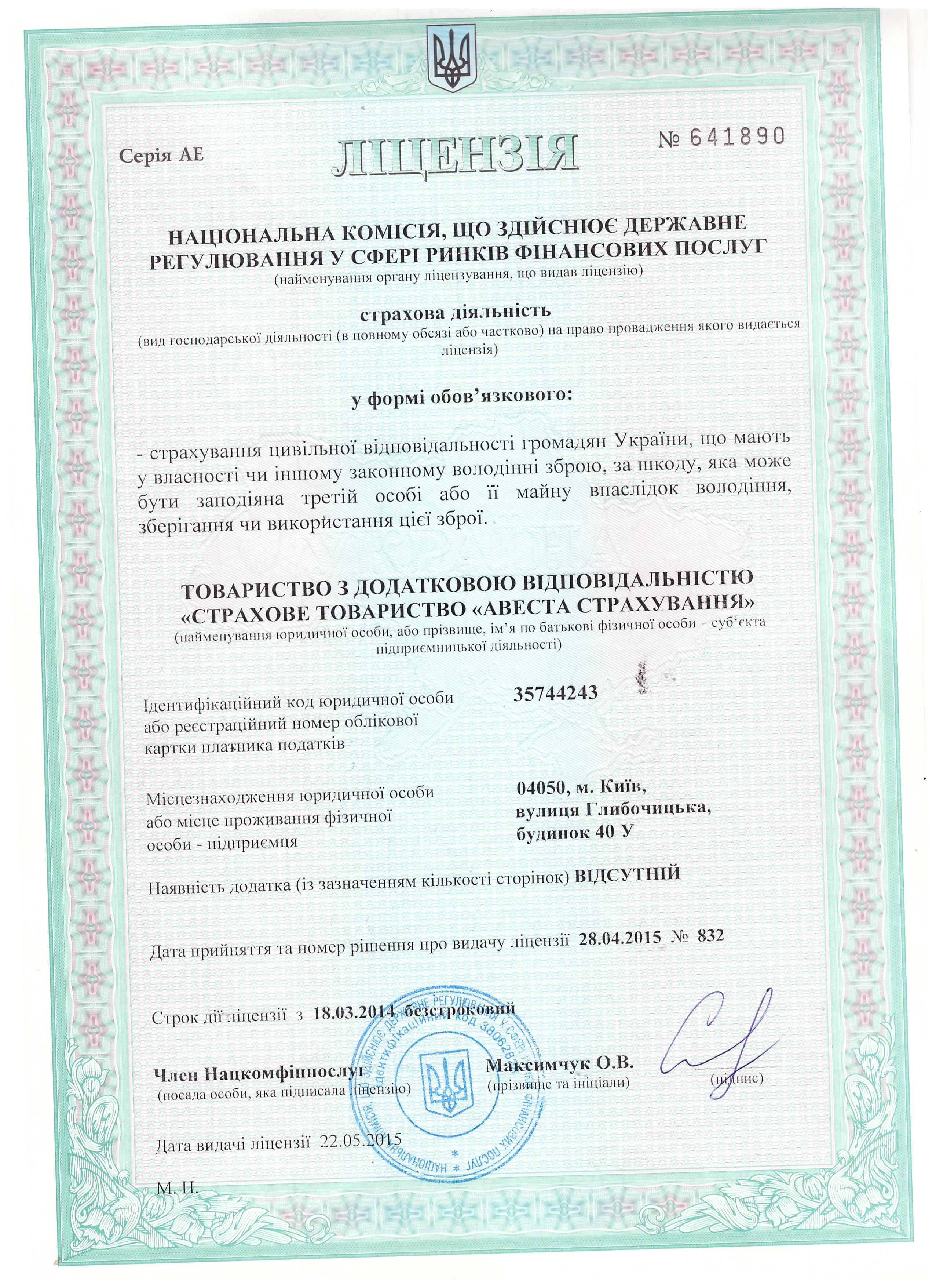 Ліцензія АЕ № 641897 від 28.04.2015 р.