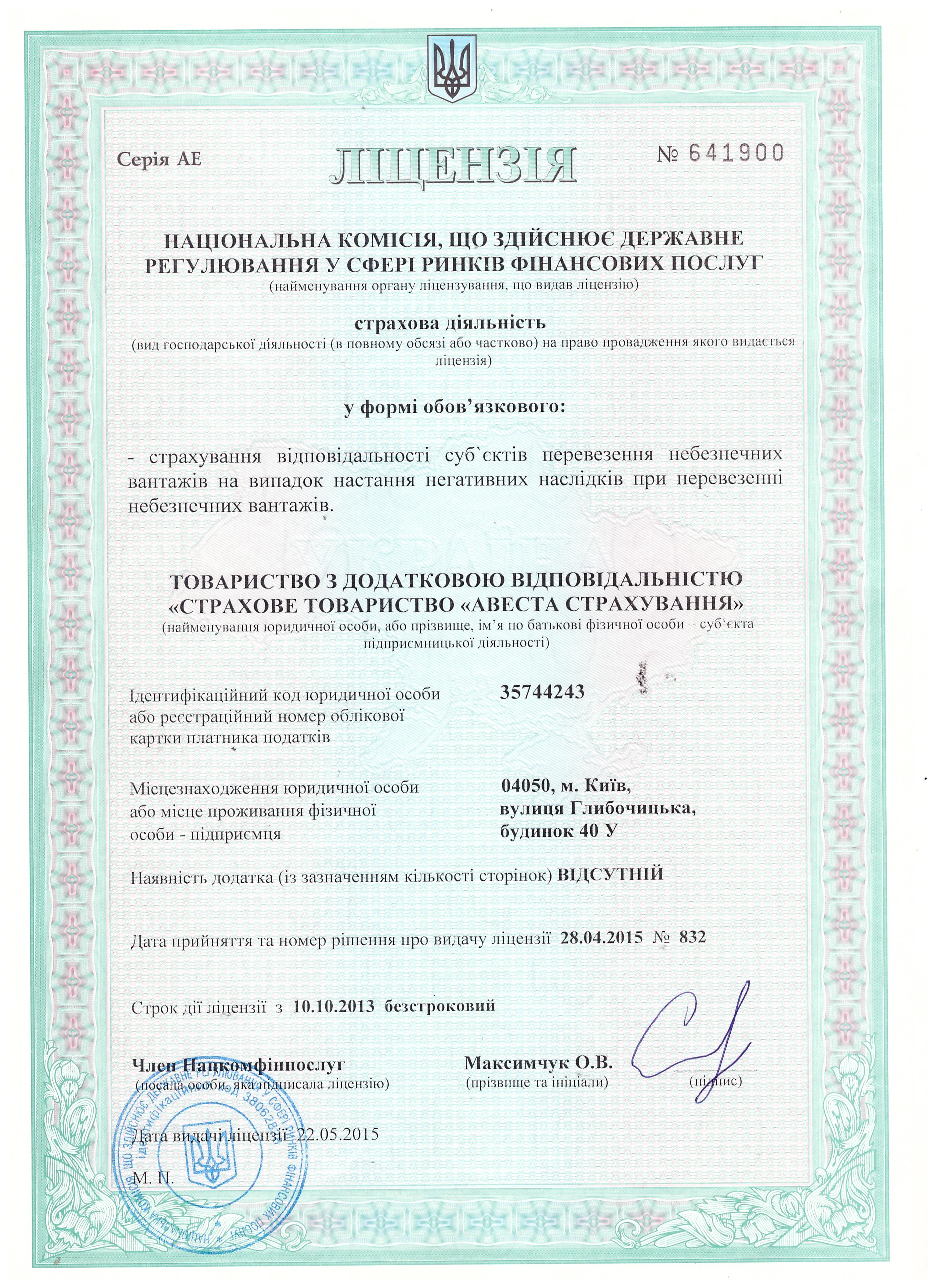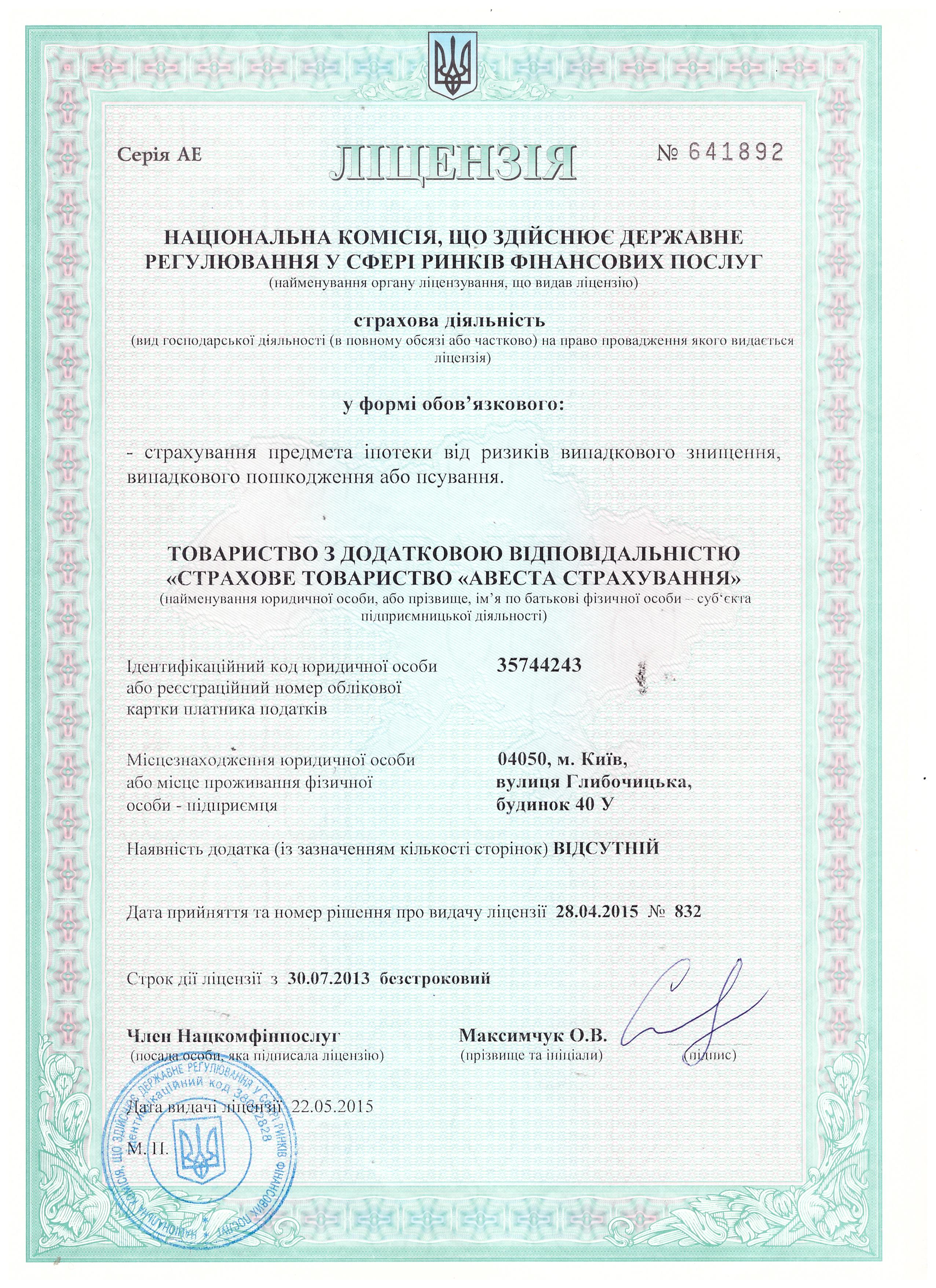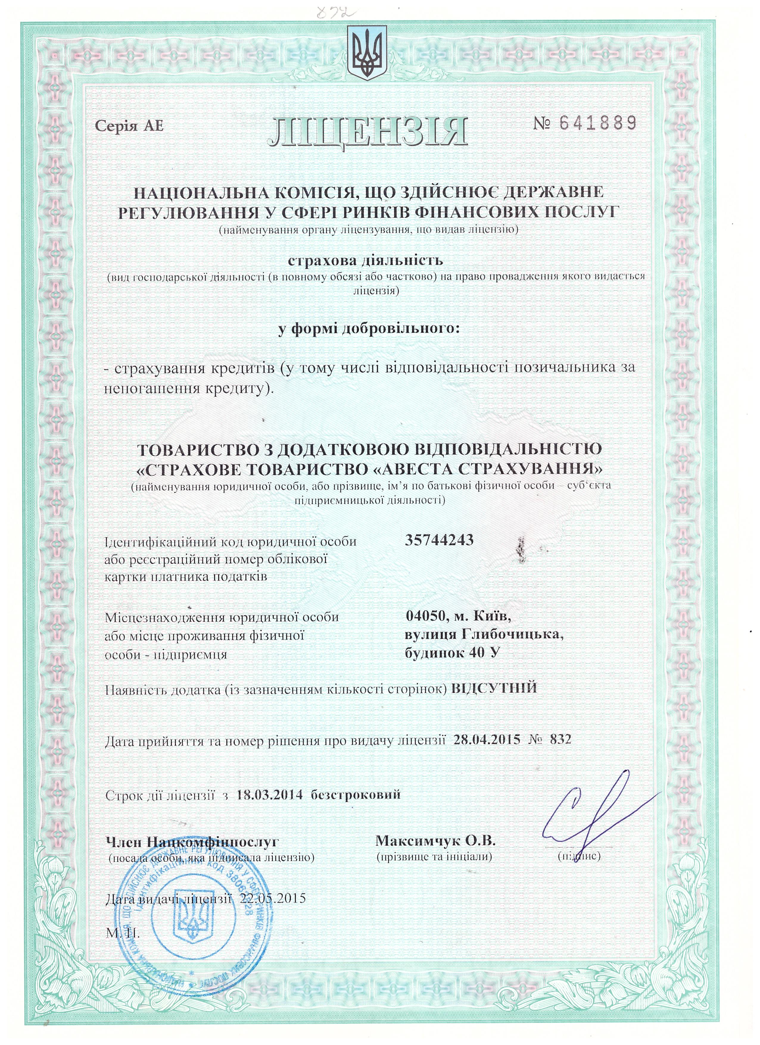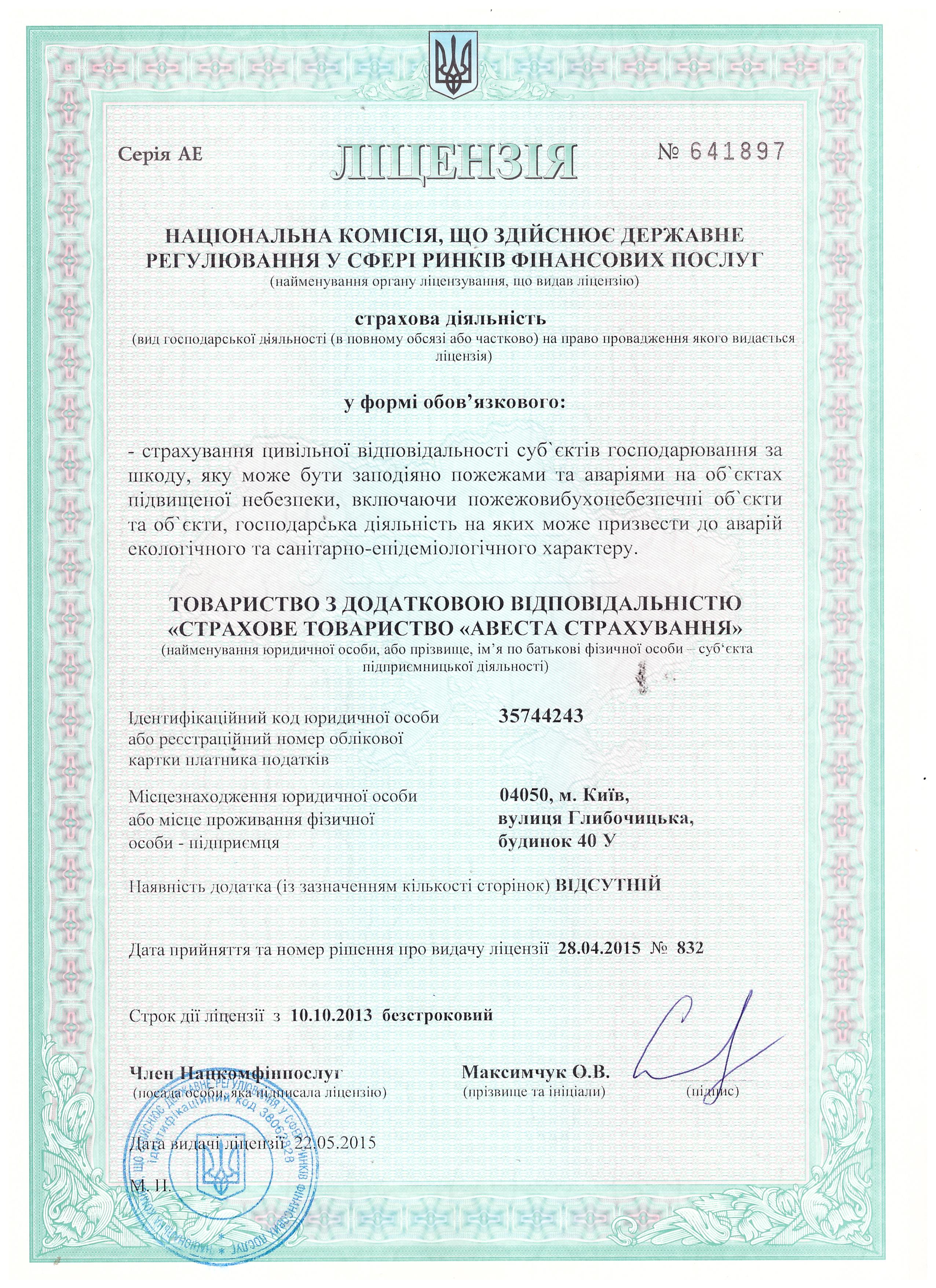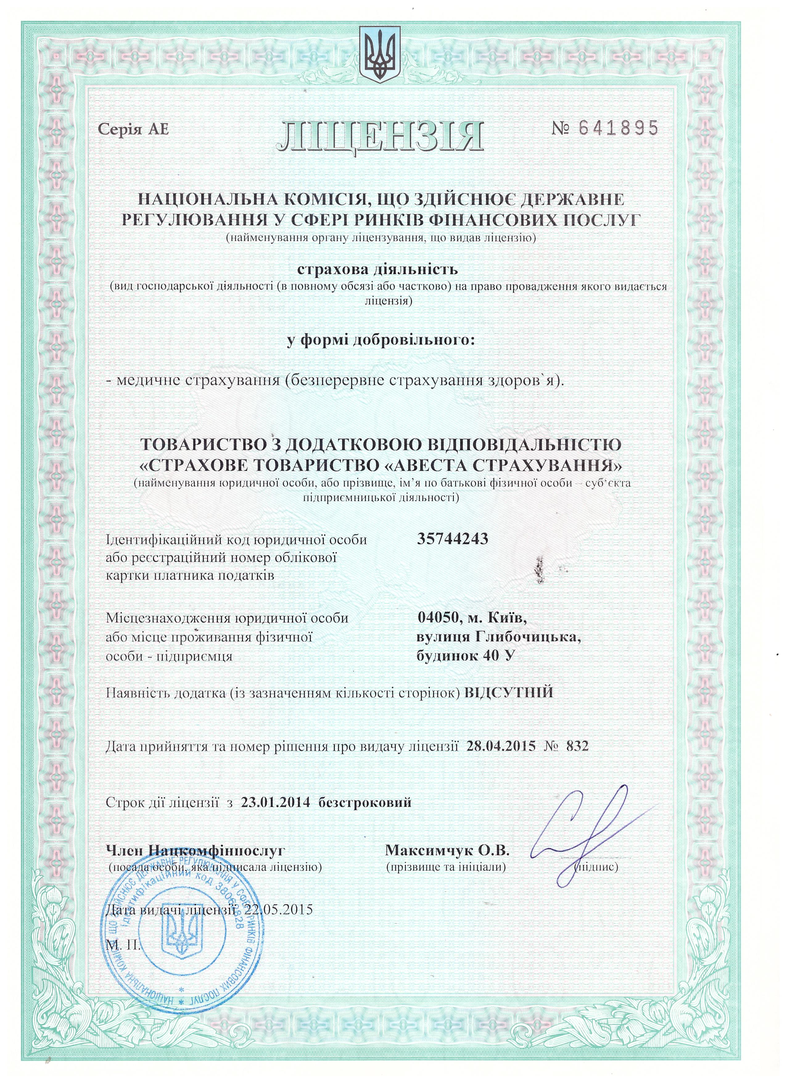 Ліцензія АЕ № 641895 від 28.04.2015 р.