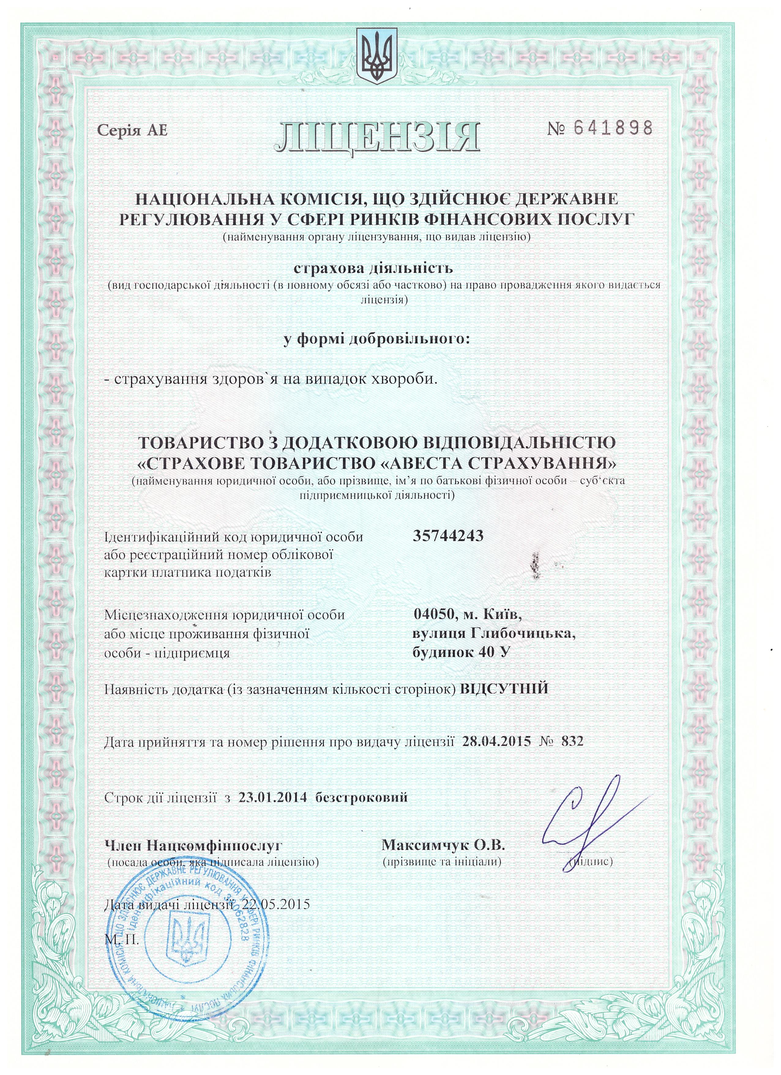 Ліцензія АЕ № 641898 від 28.04.2015 р.