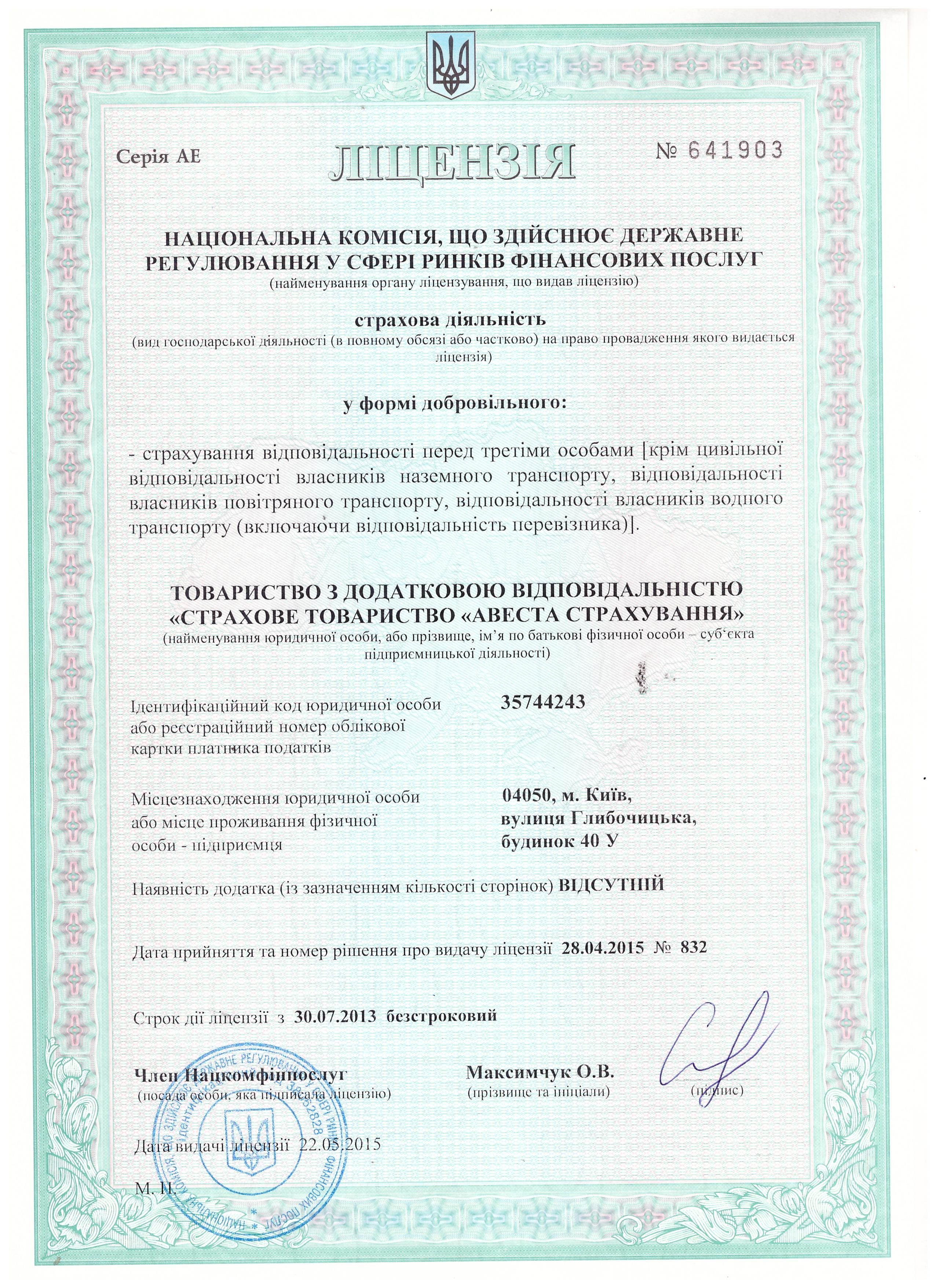 Ліцензія АЕ № 641907 від 28.04.2015 р.