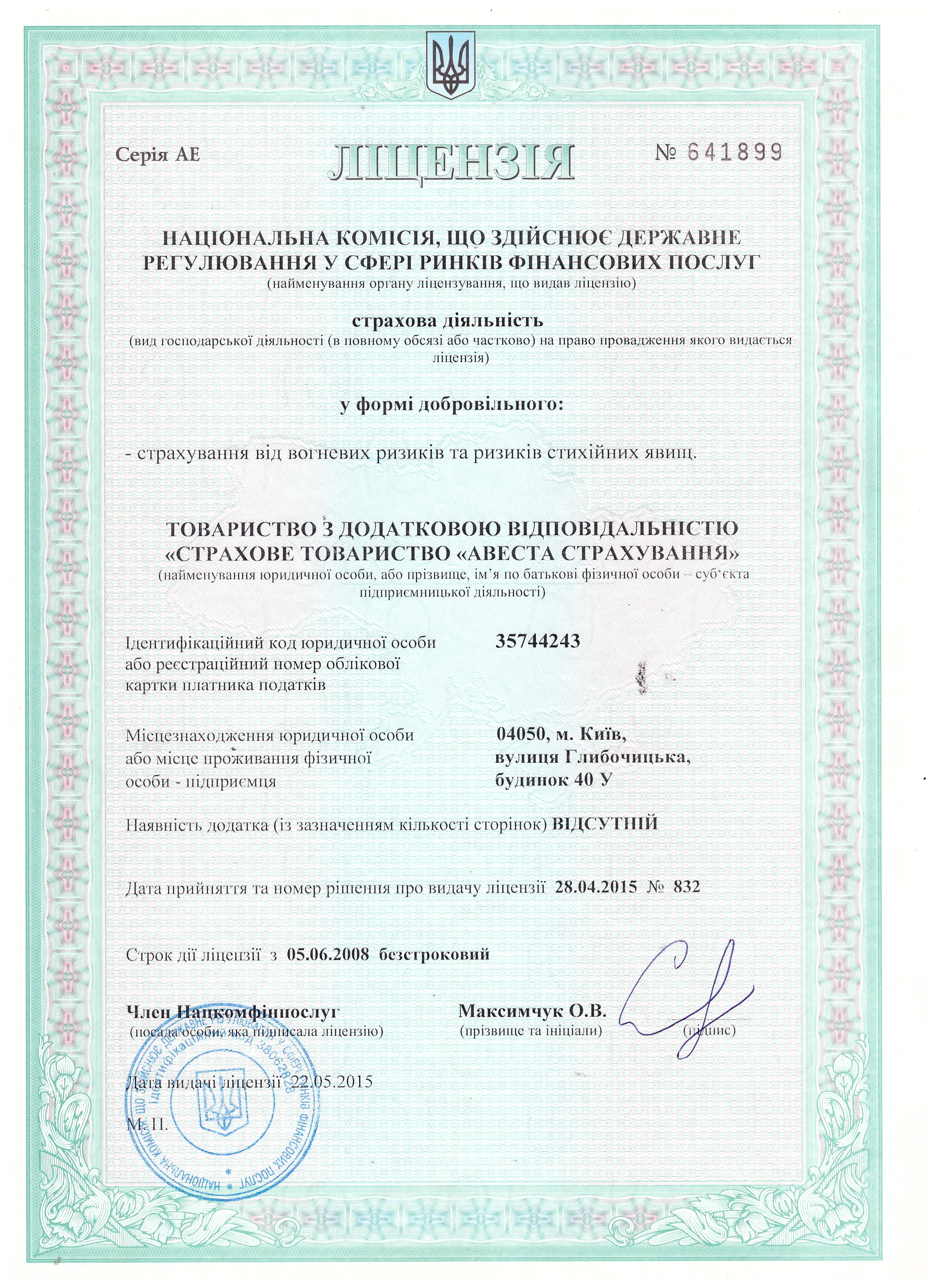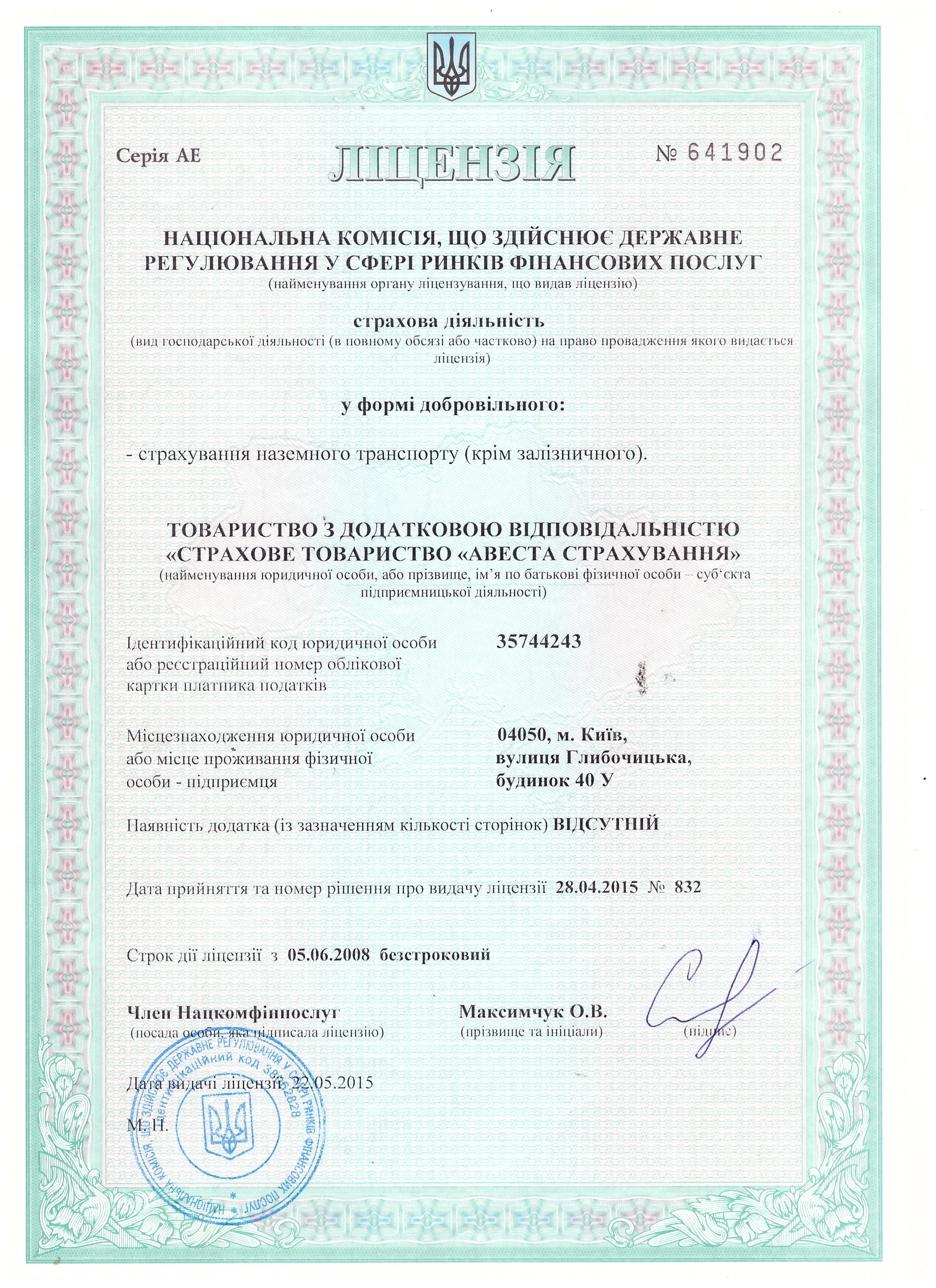 Ліцензія АЕ № 641902 від 05.06.2008 р.