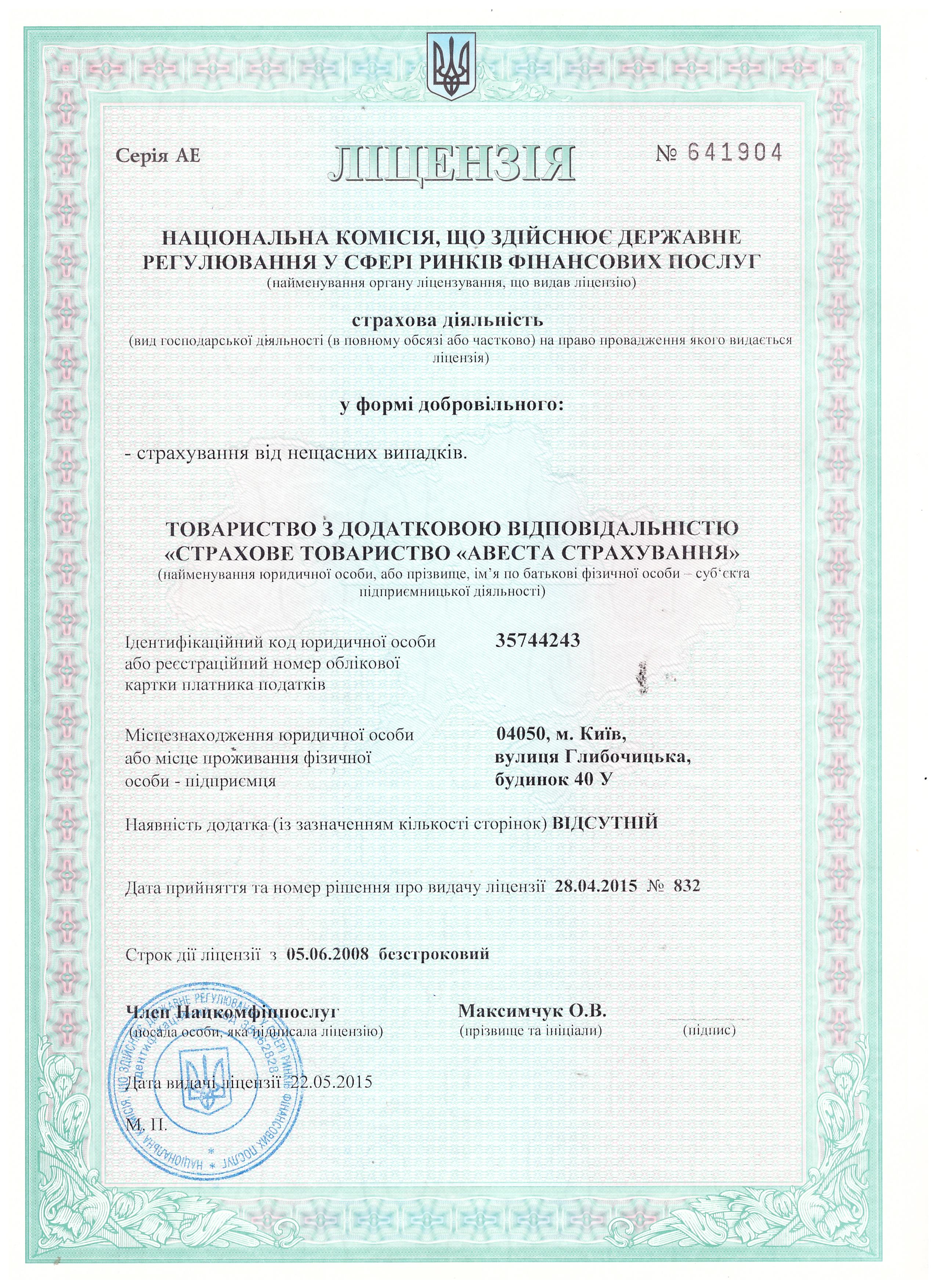 Ліцензія АЕ № 641904 від 05.06.2008 р.
